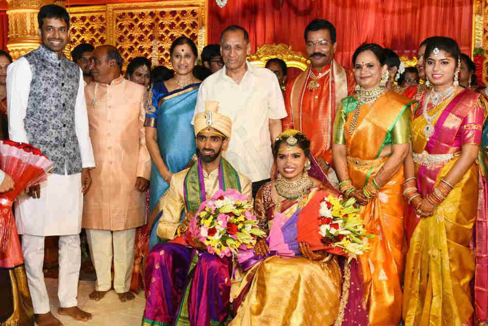 హైదరాబాద్: భారత బ్యాడ్మింటన్ డబుల్స్ స్టార్ ప్లేయర్స్ సిక్కి రెడ్డి, సుమీత్ రెడ్డిల వివాహం హైదరాబాద్లో శనివారం రాత్రి ఘనంగా జరిగింది. గత కొన్నాళ్లుగా ప్రేమలో ఉన్న ఈ ఇద్దరు ఇరు కుటుంబ సభ్యుల పెద్దలను ఒప్పించి వివాహబంధంతో ఒక్కటయ్యారు. శంషాబాద్ సమీపంలోని మల్లిక కన్వెన్షన్ హాల్లో వీరి వివాహం అంగరంగ వైభవంగా జరిగింది.