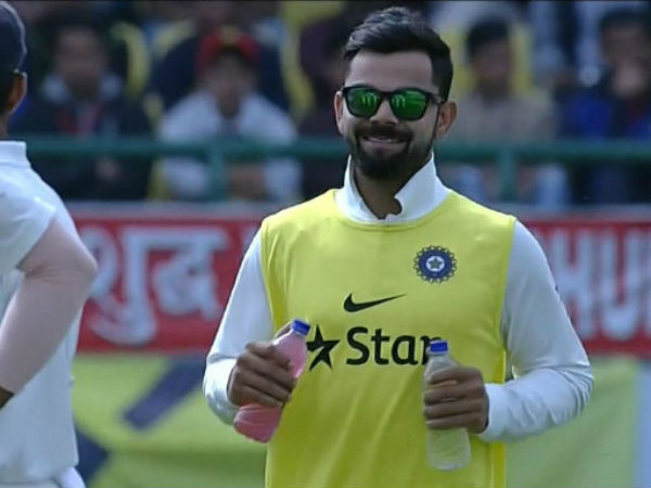 హైదరాబాద్: ధర్మశాల వేదికగా భారత్, ఆస్ట్రేలియాల మధ్య జరుగుతున్న చివరి టెస్టులో టీమిండియా కెప్టెన్ విరాట్ కోహ్లీ 'డ్రింక్స్ బాయ్' అవతారం ఎత్తాడు. రాంచీ టెస్టులో భుజం నొప్పి గాయం కారణంగా చివరి టెస్టుకు కోహ్లీ దూరమయ్యాడు. మ్యాచ్ ఆరంభానికి కొద్ది నిమిషాలు ముందు కోహ్లీ తప్పుకుంటున్నట్లు జట్టు మేనేజ్ మెంట్ ప్రకటించింది.
