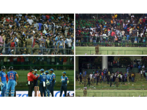 మూడో వన్డేలో శ్రీలంక జట్టు ఓటమి అంచుల్లో ఉన్న సమయంలో లంక అభిమానులు జీర్ణించుకోలేకపోయారు. టీమిండియా లక్ష్యానికి చేరువైన క్రమంలో ప్రేక్షకులు గ్రౌండ్లోకి బాటిల్స్ విసిరేశారు. దీంతో అంపైర్లు మ్యాచ్ను 35 నిమిషాల పాటు అంపైర్లు ఆటను తాత్కాలికంగా నిలిపివేశారు.