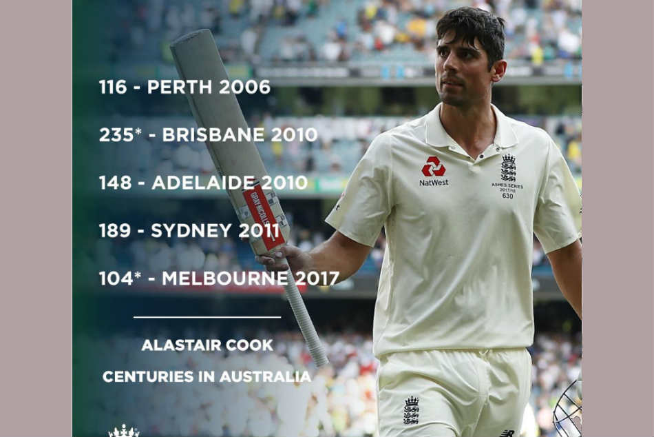 యాషెస్ సిరిస్లో ఆరు హాఫ్ సెంచరీలను సెంచరీలుగా మలచడంలో విఫలమయ్యాడు. అదే ఆస్ట్రేలియాలో జరిగే యాషెస్ టెస్టు సిరిస్ విషయానికి వస్తే 10 హాఫ్ సెంచరీల్లో ఐదు సెంచరీలుగా మలిచాడు. ఆస్ట్రేలియాలోని ప్రధాన మైదానాల్లో అలెస్టర్ కుక్ సెంచరీలు ఏయే సంవత్సరాల్లో చేశాడంటే..