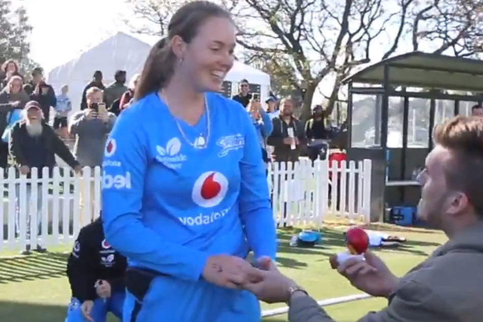 హైదరాబాద్: ఆస్ట్రేలియా మహిళా క్రికెటర్కు మైదానంలో ఆమె బాయ్ఫ్రెండ్ ఊహించని షాకిచ్చాడు. అడిలైడ్ స్ట్రయికర్స్ క్రికెటర్ అమందా జేడ్ వెల్లింగ్టన్కు ఆమె బాయ్ఫ్రెండ్ టేలర్ మెక్కిచీనీ మైదానంలోనే మ్యారేజి ప్రపోజల్ చేశాడు. పెళ్లి చేసుకుంటానంటూ మోకాళ్లపై కూర్చొని మైదానంలోనే ఆమెకు ప్రపోజ్ చేశాడు.