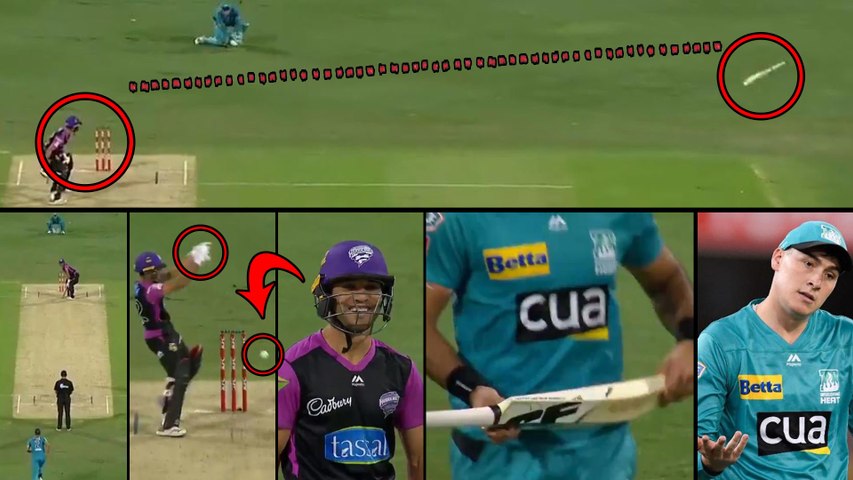 గురువారం గబ్బా వేదికగా బ్రిస్బేన్ హీట్, హోబర్ట్ హరీకేన్స్ జట్ల మధ్య జరిగిన మ్యాచ్లో మ్యాట్ రెన్షా బౌండరీ వద్ద అథ్లెటిక్ విన్యాసాలు చేసి కళ్లు చెదిరే క్యాచ్ అందుకున్నాడు. ఇదే మ్యాచ్లో మరో ఘటన కూడా చోటుచేసుకుంది. హోబర్ట్ హరికేన్స్ ఇన్నింగ్స్లో భాగంగా 18వ ఓవర్లో ఆప్ఘనిస్తాన్ స్పిన్నర్ ఖైస్ అహ్మద్ స్ట్రైకింగ్లో ఉన్నాడు. బ్రిస్బేన్ హీట్ బౌలర్ జోష్ లాలోర్ వేసిన ఫుల్ లెంగ్త్ బంతిని స్టంప్స్కు దూరంగా జరిగి ఫైన్లెగ్ మీదుగా షాట్ ఆడాలని ప్రయత్నించాడు. అయితే షాట్ ఆడే క్రమంలో ఖైస్ చేతిలోంచి బ్యాట్ జారిపోయింది. ఆ బ్యాట్ గాల్లో గిర్రున తిరిగి కొంచెం దూరంలో పడింది.