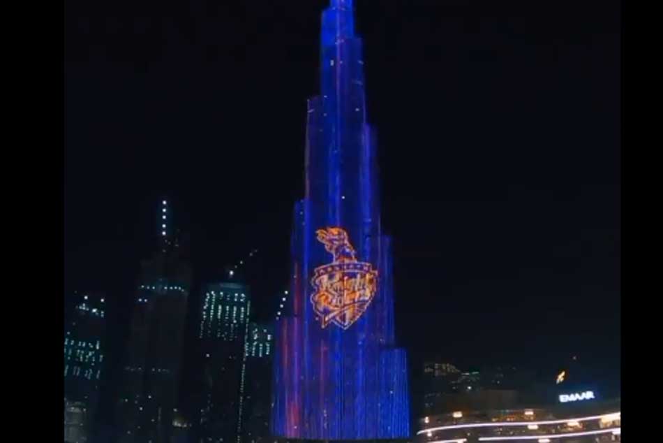 అబుదాబిలోని షేక్ జాయేద్ స్టేడియంలో ముంబై ఇండియన్స్తో దినేశ్ కార్తీక్ సారథ్యంలోని కోల్కతా తలపడనుంది. ఈ నేపథ్యంలో సీజన్ తొలి మ్యాచ్ ఆడుతున్న కేకేఆర్కు ప్రపంచంలోనే అత్యంత ఎత్తైన బిల్డింగ్ బుర్జ్ఖలీఫా ఎల్ఈడీ లైట్లతో ఘన స్వాగతం పలికింది. బుర్జ్ఖలీఫా కోల్కతా నైట్ రైడర్స్ జెర్సీ రంగులతో ధగధగలాడింది. పర్పుల్, గోల్డ్ కలర్లతో ఫ్రాంఛైజీ లోగోతో పాటు ఆటగాళ్ల ఫొటోలను కూడా భవనంపై ప్రదర్శించింది.