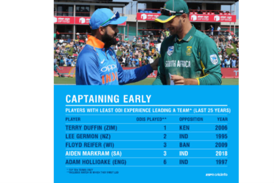 డర్బన్ వేదికగా జరిగిన తొలి వన్డేలో గాయం కారణంగా డుప్లెసిస్ దూరం కావడంతో అతడి స్థానంలో దక్షిణాఫ్రికా క్రికెట్ బోర్డు 23 ఏళ్ల మర్క్రమ్కు అవకాశం ఇచ్చింది. అయితే, తన కెరీర్లో ఇంత త్వరగా కెప్టెన్సీ అవకాశం వస్తుందని మర్క్రమ్ ఊహించి ఉండకపోవచ్చు.