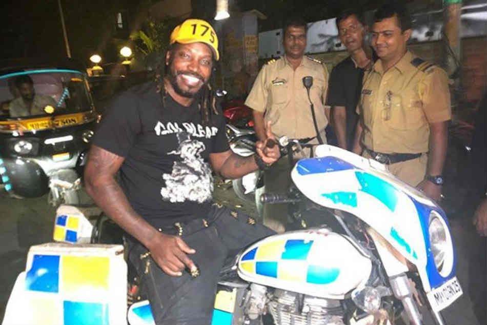 అతను మ్యాచ్ పూర్తి అయి బయట తిరుగుతున్నప్పుడు కూడా అతని లైఫ్ స్టైల్తో అందరినీ తన వైపు తిట్టుకుంటాడు. అందులో భాగంగానే ఇటీవల ముంబైలో గేల్ చేసిన పనిని అభిమానులతో పంచుకున్నాడు. ముంబై వీధుల్లో తిరుగుతూ ఎంజాయ్ చేస్తున్న గేల్.. ముంబై లోకల్ పోలీసుల మోటార్ సైకిల్ ఎక్కి ఫోజిచ్చాడు. అలా గేల్ కూర్చొని ఉండగా పోలీసులు అతని వెనుక నుంచొని ఉన్నారు. ఓ గ్రేట్ బ్యాట్స్మన్ నగర వీధుల్లో అలా బైక్పై కూర్చొవడం అందరినీ ఆశ్చర్యానికి గురి చేసింది.