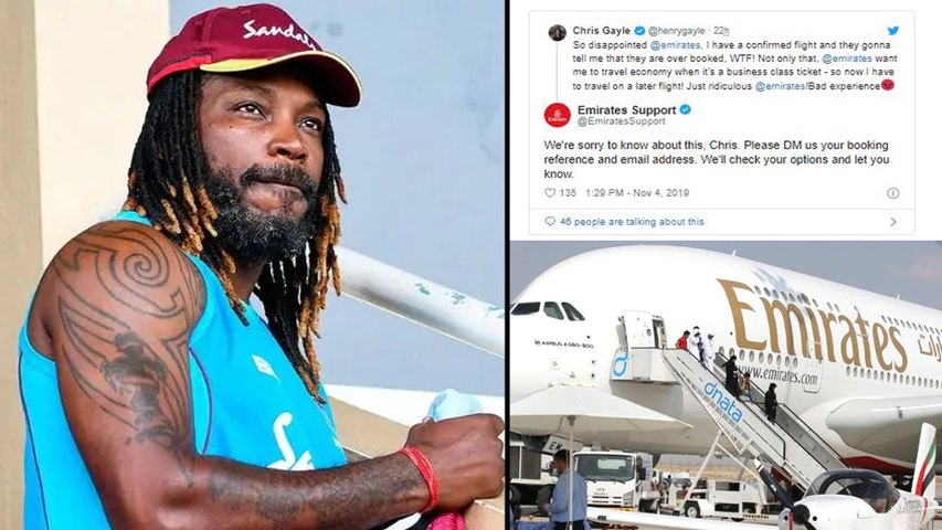 ఎమిరేట్స్ ఎయిర్లైన్స్పై తన అసహనాన్ని ట్విట్టర్ వేదికగా ప్రదర్శించాడు. ఈ మేరకు క్రిస్ గేల్ తన ట్విట్టర్లో "ఎమిరేట్స్ నా పట్ల ప్రవర్తించిన తీరుకు నిరాశచెందా. నా వద్ద కన్ఫర్మ్ టికెట్ ఉన్నప్పటికీ.. బుక్ అయిపోయిందని చెప్పారు. WTF! అంతే కాదు, నేను బిజినెస్ క్లాస్ టికెట్ బుక్ చేసుకుంటే ఎకానమీ క్లాస్లో ప్రయాణించమంటున్నారు. దీంతో నేను ఆ తర్వాతి విమానంలో ప్రయాణించవలసి ఉంది! ఎమిరేట్స్తో చెత్త అనుభవం" అంటూ ట్వీట్ చేశాడు.