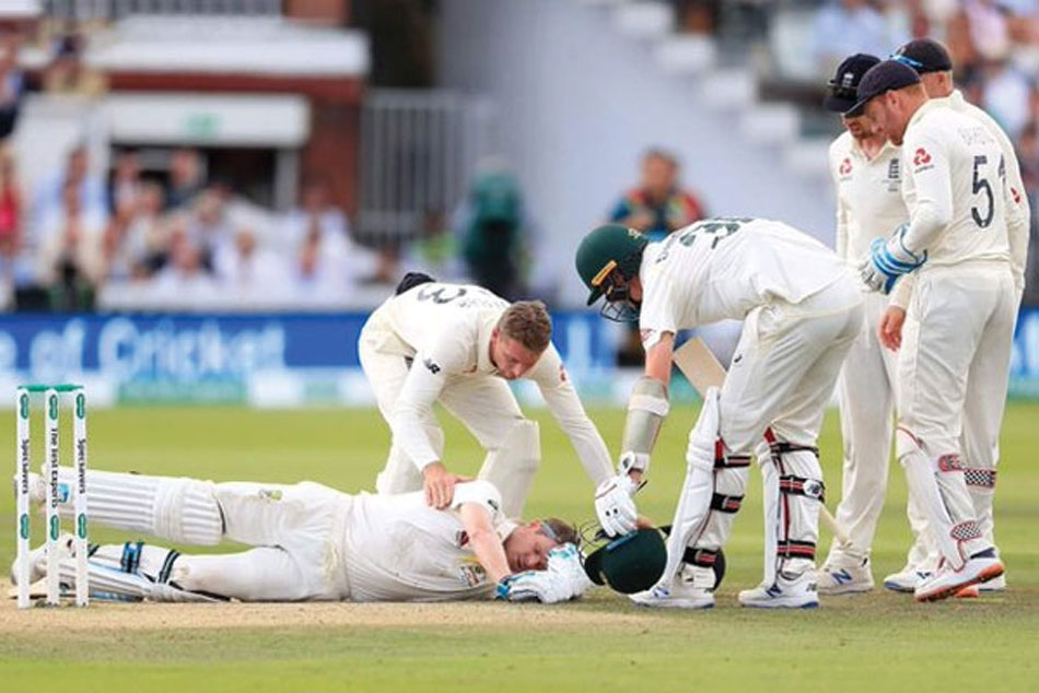 యాషెస్ సిరీస్లోనే స్టీవ్ స్మిత్ ఇంగ్లీష్ స్టార్ పేసర్ జోఫ్రా ఆర్చర్ బౌలింగ్లో తీవ్రంగా గాయపడ్డాడు. రెండో టెస్టులో 148 కిలోమీటర్ల వేగంతో ఆర్చర్ వేసిన ఓ బౌన్సర్ నేరుగా స్మిత్ తలకు తాకిం ది. నొప్పితో విలవిల్లాడి అక్కడే కుప్పకూలిన స్మిత్ రిటైర్డ్హర్ట్గా పెవిలియన్ చేరాడు. కాసేపటికే సిడిల్ (9) ఔటవడంతో మరోసారి క్రీజులోకి వచ్చిన స్మిత్.. పరిస్థితిని చక్కదిద్దే ప్రయత్నం చేశాడు. అయితే సెంచరీకి చేరువైన స్మిత్ను వోక్స్ వికెట్ల ముందు దొరకబుచ్చుకోవడంతో ఔట్ అయ్యాడు.