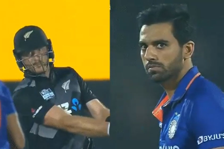 న్యూజిలాండ్ ఇన్నింగ్స్ సందర్భంగా దీపక్ చాహర్ వేసిన 18వ ఓవర్లో ఈ ఘటన చోటు చేసుకుంది. తొలి బంతిని దీపక్ చాహర్ స్లాట్లో వేయగా.. మార్టిన్ గప్టిల్ సునాయసంగా స్టాండ్స్లోకి కొట్టేశాడు. గప్టిల్ ఆ షాట్ కొట్టిన తర్వాత కనీసం బంతి వైపు కూడా చూడలేదు. దీపక్ చాహర్ వైపు సీరియస్గా చూస్తూ అతని ఇగోను టచ్ చేశాడు. సైలెంట్గా అతన్ని రెచ్చగొట్టే ప్రయత్నం చేశాడు.