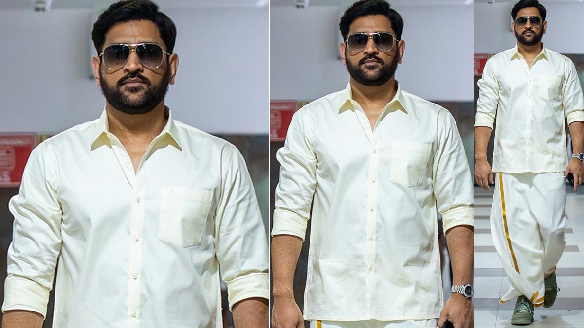 ఈ క్రమంలోనే ఇప్పుడు తాజాగా ధోనీకి సంబంధించిన కొత్త ఫొటోను పోస్ట్ చేసింది. ఇందులో ధోనీ తమిళనాడు సంప్రదాయ పంచెకట్టులో మాస్ గా కనిపించి ఆకట్టుకున్నారు. వైట్ అండ్ వైట్ పంచెకట్టు, షర్ట్ ధరించి.. చేతిలో ఫోన్, చేతికి వాచ్, ముఖానికి స్టైలిష్ కళ్లజోడు, కాలికి టాప్ బ్రాండ్ షూస్ ధరించి యమా స్టైలిష్ గా నడుస్తూ కనిపించారు. ఏదో హోటల్ లోని కారిడర్ లో నడుస్తున్నట్లుగా కనిపించారు. ప్రస్తుతం ఈ పిక్ సోషల్ మీడియాలో తెగ ట్రెండ్ అవుతోంది.