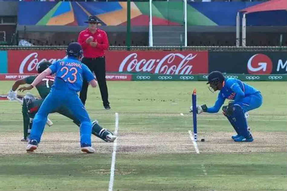 ఫైనల్ మ్యాచ్లో భారత యువ వికెట్ కీపర్ ధ్రువ్ జురెల్ ఆకట్టుకున్నాడు. అద్భుత కీపింగ్ నైపుణ్యంతో టీమిండియా సీనియర్ వికెట్ కీపర్ ఎంఎస్ ధోనీని తలపించాడు. భారత స్పిన్నర్ రవి బిష్ణోయ్ వేసిన 17వ ఓవర్ మొదటి బంతిని బంగ్లా బ్యాట్స్మన్ షాదత్ హుస్సేన్ కాస్త ముందుకొచ్చి డిఫెండ్ చేసాడు. బంతి బ్యాటుకు ఇన్సైడ్ ఎడ్జ్ తీసుకుంది. వెంటనే జురెల్ బంతిని అందుకొని రెప్పపాటులో స్టంపింగ్ చేశాడు. షాదత్ నిరాశగా పెవిలియన్ బాట పట్టాడు.