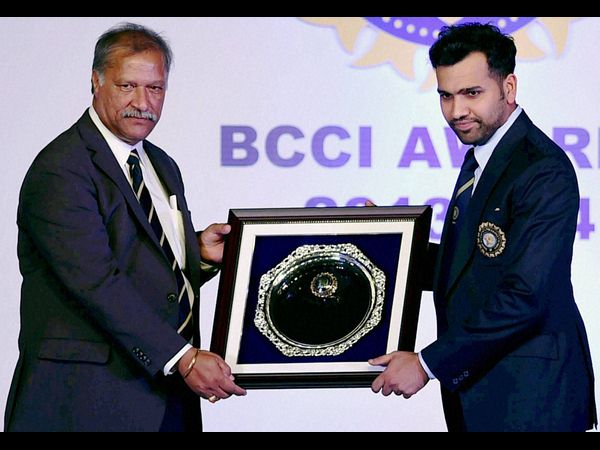 ముంబైలో బీసీసీఐ ట్రెజరర్ అనిరుధ్ చౌదరి రిషీ ధావన్కు అవార్డు అందిస్తున్న దృశ్యం. పర్వేజ్ రసూల్, కేదార్ జాదవ్, వినయ్ కుమార్, రాహుల్ త్రిపాఠి, బి అనిరుద్ధ్, శుభం గిల్, స్మృతి మంధానా, అనీల్ చౌదరి కూడా అవార్డులు స్వీకరించారు.
