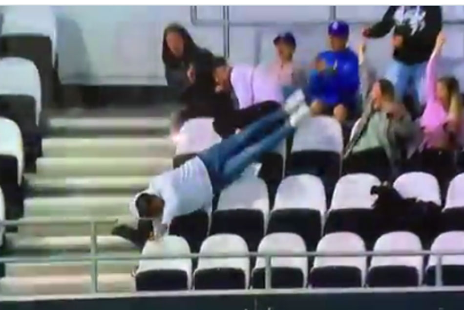 వెనక వరుసలోని సీటు నుంచి ముందు వరుసలోని సీటుకు పడిపోతూ ఆ అభిమాని పట్టిన క్యాచుకు అక్కడి ఫాన్స్ ఫిదా అయ్యారు. కామెంటేటర్లు సైతం ఆ అభిమాని సాహసానికి వావ్ అన్నారు. ప్రస్తుతం దీనికి సంబంధించిన వీడియో సోషల్ మీడియాలో వైరల్గా మారింది. ప్రస్తుతం ప్రపంచాన్ని జయించానన్నట్లుగా అతను ఇచ్చిన హావభావాలు సూపర్గా ఉన్నాయని నెటిజన్లు కామెంట్లు చేస్తున్నారు. 'జాంటీ రోడ్స్, రవీంద్ర జడేజాను మించిపోయావ్', 'వావ్ ఫెంటాస్టిక్ క్యాచ్' అంటూ తెగపొగిడేస్తున్నారు ఫ్యాన్స్. ఇక ఆలస్యం ఎందుకు మీరూ ఆ వీడియోను ఓ లుక్కేయండి.