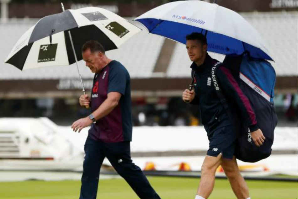 హైదరాబాద్: ఐదు టెస్టుల యాషెస్ సిరిస్లో భాగంగా లార్డ్స్ వేదికగా బుధవారం ప్రారంభం కావాల్సిన రెండో టెస్టుకు వర్షం అడ్డంకిగా మారింది. దీంతో టాస్ వర్షం కారణంగా వాయిదా పడింది. లంచ్ విరామ సమయానికి కూడా వర్షం భారీగా కురుస్తుండటంతో అంపైర్లు తాత్కాలికంగా నిలిపివేశారు.