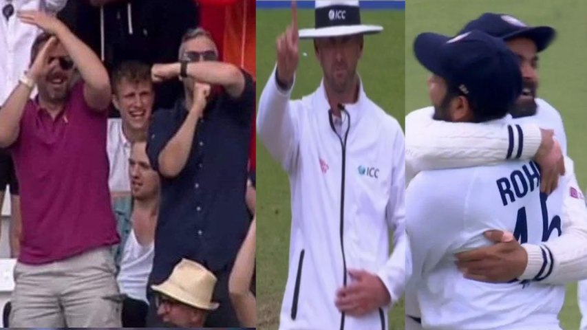 ఇంగ్లండ్ రెండో ఇన్నింగ్స్ సందర్భంగా ఇషాంత్ శర్మ వేసిన 21వ ఓవర్ చివరి బంతి జానీ బెయిర్ స్టో ప్యాడ్లను తాకింది. దాంతో భారత ఆటగాళ్లంతా గట్టిగా అప్పీల్ చేశారు. కానీ అంపైర్ మాత్రం నాటౌట్ ఇచ్చాడు. దాంతో కోహ్లీ రివ్యూ తీసుకుందామని చెప్పగా ఇతర ఆటగాళ్లంతా వద్దని వారించారు. బంతి.. బ్యాట్కు తగిలిందనే సందేహం వ్యక్తం చేయడంతో వికెట్ల మీదుగా వెళ్లే అవకాశం ఉందని చెప్పారు. కానీ వికెట్పై గట్టి విశ్వాసంతో కనిపించిన కోహ్లీ ఎవరూ చెప్పినా వినకుండా రివ్యూ తీసుకున్నాడు. తీరా రిప్లేలో బంతి బ్యాట్ను తాకలేదు. పైగా బాల్ ట్రాకర్లో మిడిల్ వికెట్ను హిట్ చేయడంతో అంపైర్ తన నిర్ణయాన్ని మార్చుకొని ఔటిచ్చాడు. దాంతో కోహ్లీ ప్రపంచకప్ గెలిచినంత సంతోషం వ్యక్తం చేశాడు. ఇతర ఆటగాళ్లు సైతం కోహ్లీ నిర్ణయాన్ని సమర్థిస్తూ మెచ్చుకున్నారు. రోహిత్ శర్మ కూడా విరాట్ కోహ్లీని హగ్ చేసుకోని మరి అభినందించాడు.