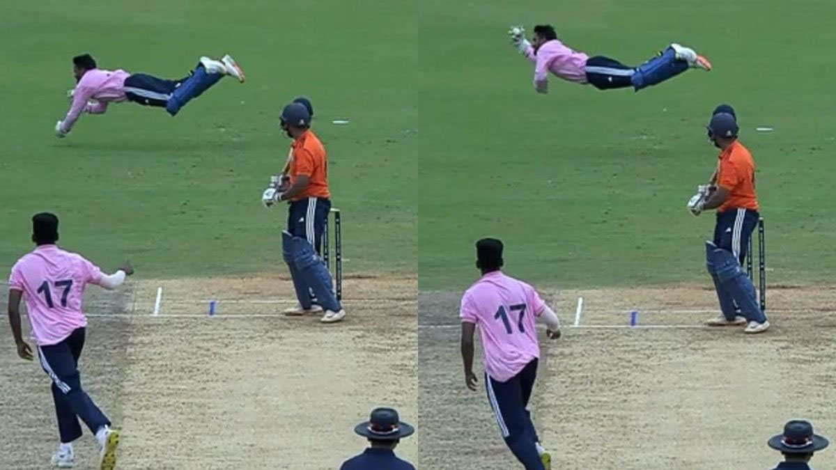 పుదుచ్చేరి: ఐపీఎల్లో పంజాబ్ కింగ్స్ తరఫున సత్తా చాటి అందరి దృష్టిని ఆకర్షించిన వికెట్ కీపర్ కమ్ బ్యాటర్ ప్రభ్సిమ్రాన్ సింగ్... దేవధర్ ట్రోఫీలో స్టన్నింగ్ క్యాచ్తో ఔరా అనిపించాడు. సౌత్ జోన్తో సోమవారం జరిగిన మ్యాచ్లో నార్త్ జోన్కు ప్రాతినిథ్యం వహిస్తున్న ప్రభ్సిమ్రాన్ సింగ్.. వికెట్ల వెనుకాల కళ్లు చెదిరే విన్యాసం చేశాడు. సౌత్ జోన్ బ్యాటర్ రికీ భూయ్ ఇచ్చిన క్యాచ్ను చేప పిల్లలా దూకి అందుకున్నాడు.