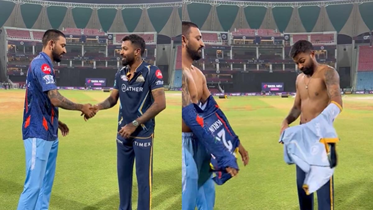 అనంతరం షర్టులు మార్చుకున్నారు. ఇది చూసిన ఫ్యాన్స్ మరోసారి హార్దిక్ను ట్రోల్ చేస్తున్నారు. ఆడేటప్పుడు స్లెడ్జింగ్ చేసి ఇప్పుడు జెర్సీ మార్చుకుంటే సరిపోతుందా? అని వెటకారం ఆడుతున్నారు. మరికొందరు మాత్రం ఈ అన్నదమ్ముల బాండింగ్ చూసి సంతోషం వ్యక్తం చేస్తున్నారు. ఆటలో ఏం జరిగినా ఇద్దరూ ఇలా కలిసే ఉండాలని చెప్తున్నారు.