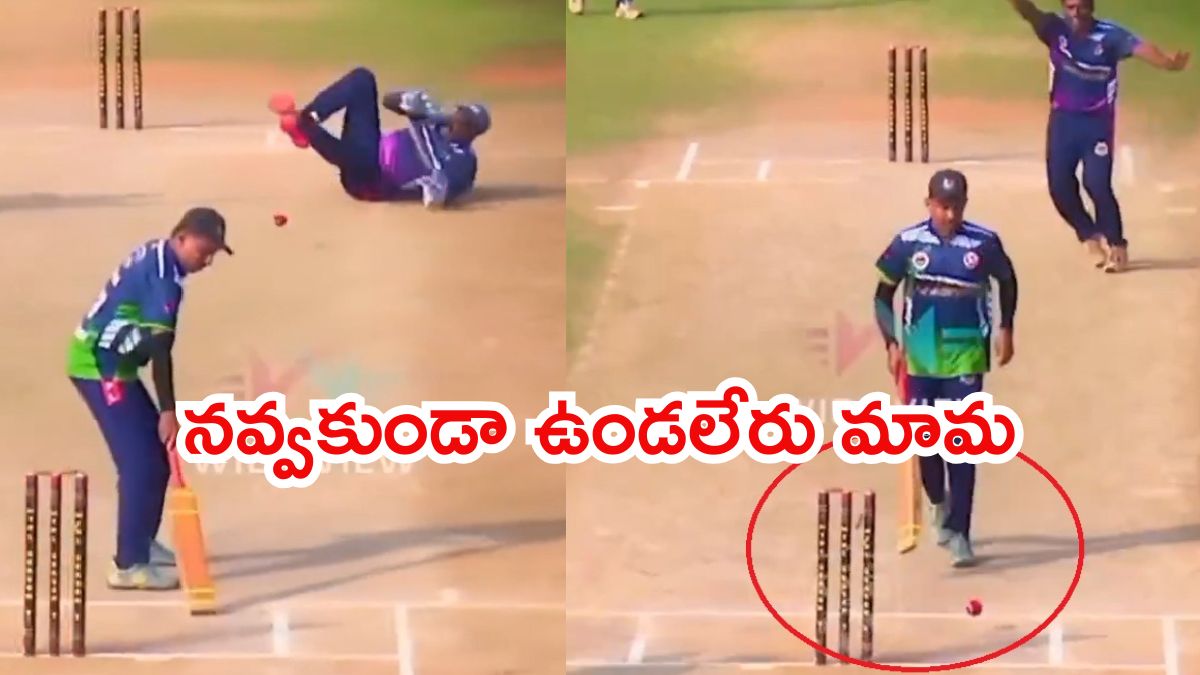 ఓ లోకల్ టెన్నిస్ బాల్ టోర్నీలో బ్యాటర్ ఫార్వార్డ్ షార్ట్ లెగ్ ఫీల్డర్ దిశగా ఆడి క్విక్ సింగిల్కు ప్రయత్నించాడు. బంతిని అందుకున్న ఫీల్డర్.. వేగంగా వికెట్ కీపర్ వైపు విసిరాడు. ఆ బంతి ఎత్తులో వెళ్లడంతో వికెట్ కీపర్ జంప్ చేసి అందుకునే ప్రయత్నం చేశాడు. కానీ అతని గ్లోవ్స్కు తాకిన బంతి నిదానంగా నాన్స్ట్రైకర్ వైపు వచ్చింది. మరోవైపు వికెట్ కీపర్ కిందపడిపోగా.. ఇద్దరు బ్యాటర్లు పరుగు పూర్తి చేశారు. నాన్స్ట్రైకర్లో ఉన్న బ్యాటర్ బంతిని చూసుకోకుండా క్రీజును దాటాడు. కీపర్ గ్లోవ్స్కు తాకి నిదానంగా వచ్చిన బంతి బ్యాటర్ కాళ్ల మధ్యలో నుంచి వెళ్లి నాన్ స్ట్రైకర్ వికెట్లను తాకింది.