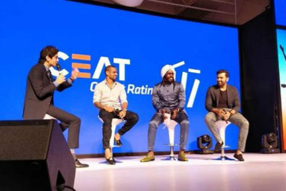 ఈ కార్యక్రమంలో శిఖర్ ధావన్ మీసం మెలేసి తొడకొట్టాడు. ఆ తర్వాత తనలా మీసం మెలేసి తొడకొట్టాలని క్రిస్ గేల్కు సవాల్ విసిరాడు. దీంతో గేల్ కూడా అచ్చం ధావన్లా మీసం మెలేసి తొడకొట్టాడు. ఈ సన్నివేశంపై రోహిత్ శర్మతో పాటు కార్యక్రమానికి హాజరైన పలువురు క్రికెటర్లు చిరునవ్వులు చిందించారు.