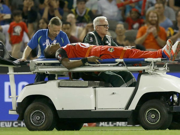 గురువారం రాత్రి పెర్త్ స్కార్చర్స్, మెల్ బోర్న్ రెనిగేడ్స్ జట్ల మధ్య మ్యాచ్ జరుగుతున్న సమయంలో ఫోర్ లైన్ వద్ద ఫీల్డింగ్ చేస్తుండగా బ్రావో తొడ కండరాలు పట్టేశాయి. దీంతో అతడు నడవడానికే ఇబ్బంది పడటంతో ఫిజియోలు బ్రావోను స్ట్రెచర్పై స్టేడియం నుంచి బయటికి తీసుకెళ్లారు.