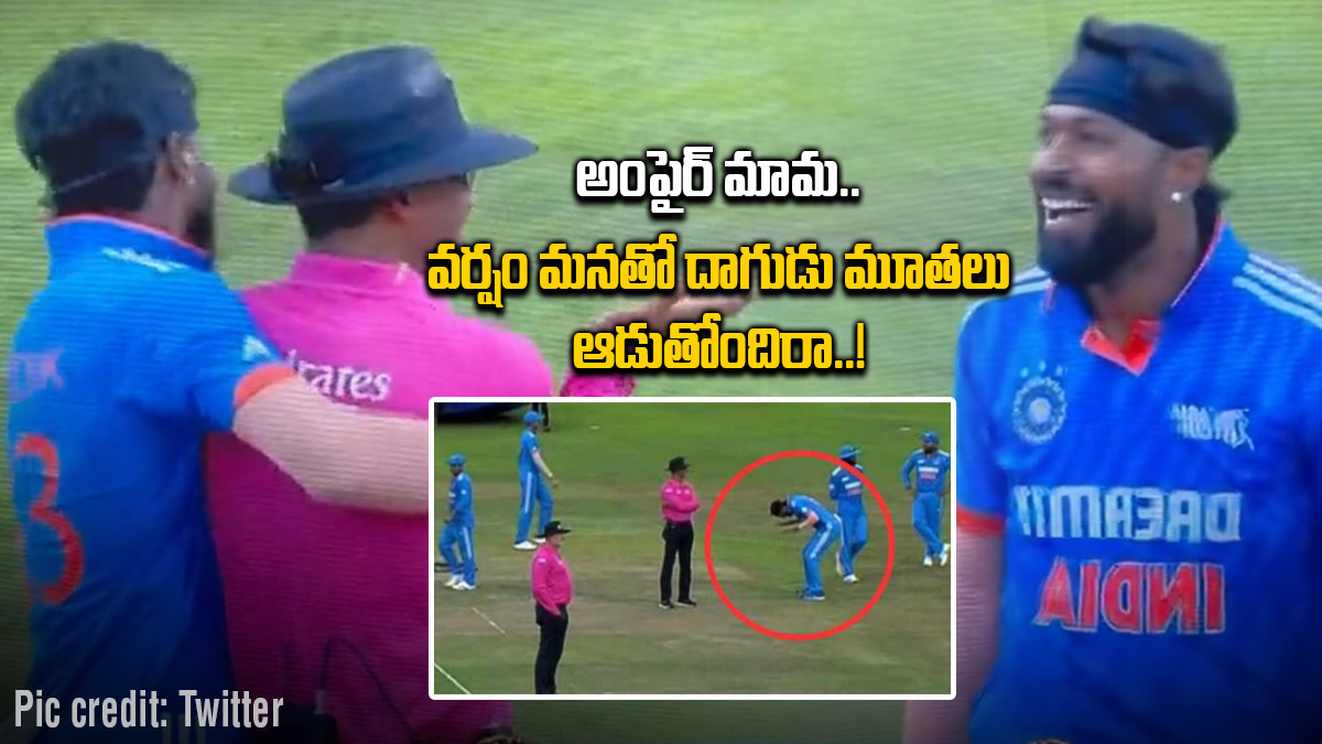 ప్రస్తుతం ఈ వీడియో నెట్టింట వైరల్ కాగా.. హార్దిక్-అంపైర్ మధ్య జరిగిన సంభాషణపై నెటిజన్లు ఫన్నీ కామెంట్స్ చేస్తున్నారు. 'అంపైర్ మామ.. వర్షం మనతో దాగుడు మూతలు ఆడుతోందిరా..!'అని హార్దిక్ అన్నాడని కామెంట్ చేస్తున్నారు.