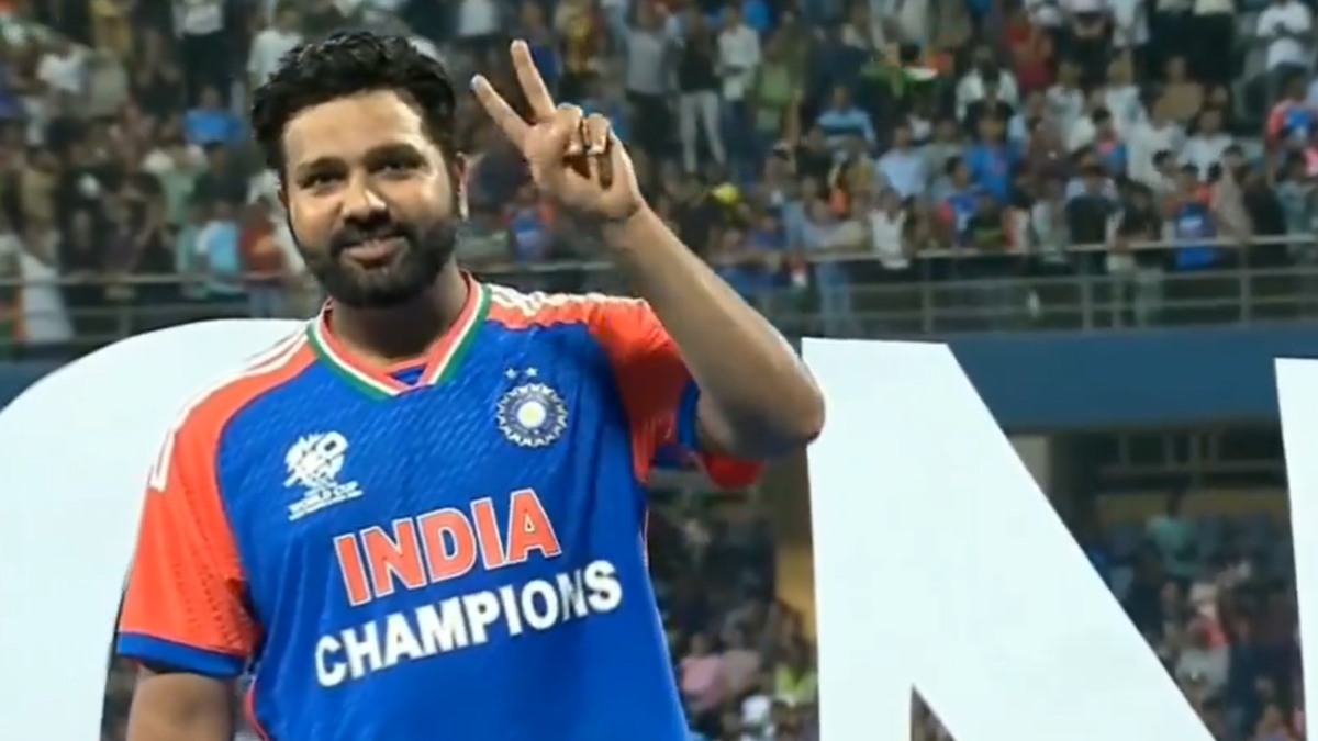 వేలాది అభిమానుల మధ్య టీమిండియా ఆటగాళ్లు వాంఖడే స్టేడియానికి చేరుకున్నారు. వాంఖడేలో భారత ఆటగాళ్లకు, కోచింగ్ స్టాఫ్కు బీసీసీఐ సన్మానన కార్యక్రమం నిర్వహించింది. రూ.125 కోట్ల ప్రైజ్మనీ చెక్ అందజేసింది. అనంతరం టీమిండియా కెప్టెన్ రోహిత్ శర్మ మాట్లాడాడు. అయితే వాంఖడేలో బాహుబలి సీన్ రిపీట్ అయ్యింది. రోహిత్ మాట్లాడానికి ప్రారంభించగా.. అభిమానుల అరుపులతో స్టేడియం దద్దరిల్లింది. అందరికీ థ్యాంక్స్ చెబుతూ హిట్మ్యాన్ మాట్లాడాడు.