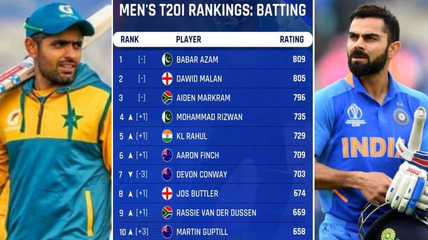 ఆస్ట్రేలియా టీ20 ఫార్మట్ కేప్టెన్ ప్లస్ ఓపెనర్ ఆరోన్ ఫించ్ ఆరో స్థానంలో కొనసాగుతున్నాడు. న్యూజిలాండ్కు చెందిన డెవాన్ కోన్వే-703, ఇంగ్లాండ్ వికెట్ కీపర్ కమ్ బ్యాటర్ జోస్ బట్లర్, దక్షిణాఫ్రికాకే చెందిన రస్సీ వ్యాన్డెర్ డుస్సెన్-669, న్యూజిలాండ్ ఓపెనర్ మార్టన్ గుప్టిల్-658 పాయింట్లతో టాప్ టెన్లో చివరి అయిదు స్థానంలో నిలిచారు. ఇదివరకు ఐసీసీ టీ20 ర్యాంకింగ్స్లో నాలుగో స్థానంలో ఉండేవాడు విరాట్ కోహ్లీ. పేలవమైన ఆటతీరును తన స్థానాన్ని దిగజార్చుకున్నాడు. 11వ స్థానంలో నిలిచాడు.