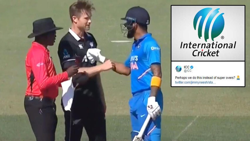 నీషమ్, రాహుల్ గొడవకు సంబందించిన ట్వీట్లు ప్రస్తుతం సోషల్ మీడియాలో వైరల్ అయ్యాయి. అయితే నీషమ్, రాహుల్ గొడవపై అంతర్జాతీయ క్రికెట్ కౌన్సిల్ (ఐసీసీ) కూడా స్పందించింది. నీషమ్, రాహుల్ సరదాగా ట్వీట్లు చేసుకున్నట్లే.. ఐసీసీ కూడా తన అధికారిక ట్విట్టర్ ఖాతా ద్వారా ఓ సరదా కామెంట్ చేసింది. ఐసీసీ తన అధికారిక ట్విట్టర్ హ్యాండిల్లో నీషమ్ పోస్ట్ను రీట్వీట్ చేసి ఇలా రాసింది. 'బహుశా మేము సూపర్ ఓవర్కు బదులుగా (పేపర్, కత్తెర, బండరాయిని) దీన్ని చేద్దామా?' అని రాసుకొచ్చింది.