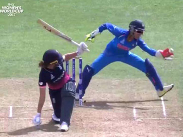 ఇంగ్లాండ్ ఇన్నింగ్స్లో భాగంగా భారత బౌలర్ దీప్తిశర్మ వేసిన 18ఓవర్ తొలి బంతిని ఇంగ్లాండ్ బ్యాట్స్ ఉమన్ నాటలీ స్క్రివర్ స్వీప్ షాట్ ఆడేందుకు యత్నించింది. అది ఆమె గ్లోవ్స్ను తాకి భారత వికెట్ కీపర్ సుష్మా వర్మ చేతుల్లో పడింది. దీనిపై అప్పీల్ చేయగా ఫీల్డ్ అంపైర్ తిరస్కరించారు.