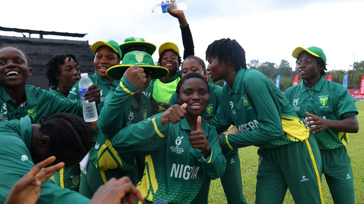 మలేషియా వేదికగా జరుగుతోన్న అండర్-19 ప్రపంచ కప్లో సంచలన విజయం నమోదైంది. తాజాగా జరిగిన మ్యాచులో టైటిల్ ఫేవరెట్లలో ఒకటైన న్యూజిలాండ్ జట్టును ఓడించి నైజీరియా జట్టు చరిత్ర సృష్టించింది. రెండు పరుగుల స్వల్ప తేడాతో విజయం సాధించింది. కాగా, అండర్ 19 ప్రపంచ కప్ చరిత్రలో నైజీరియా జట్టుకు ఇదే తొలి విజయం కావడం విశేషం. దీంతో మ్యాచ్ పూర్తి కాగానే వారి ఆనందానికి అవధులు లేకుండా పోయాయి. సంతోషంతో గెంతులేస్తూ మైదానం అంతటా పరుగులు పెట్టారు నైజీరియా అమ్మాయిలు.