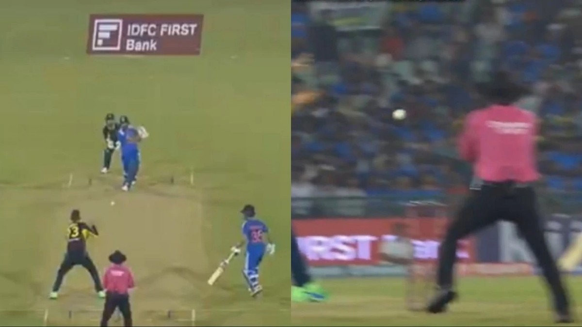 టీమిండియా బ్యాటింగ్ సందర్భంగా క్రీస్ గ్రీన్ వేసిన 14వ ఓవర్లో ఈ ఘటన చోటు చేసుకుంది. ఈ ఓవర్ రెండో బంతిని భారీ సిక్సర్గా మలిచిన జితేశ్ శర్మ.. పుల్ టాస్గా వచ్చిన మూడో బంతిని స్ట్రైట్గా బలంగా కొట్టాడు. దాంతో బంతి క్రీస్ గ్రీన్ వైపు వేగంగా దూసుకురాగా.. అతను క్యాచ్ అందుకోలేకపోయాడు. దాంతో ఫీల్డ్ అంపైర్ అనంత పద్మనాభన్కు బలంగా తాకింది.