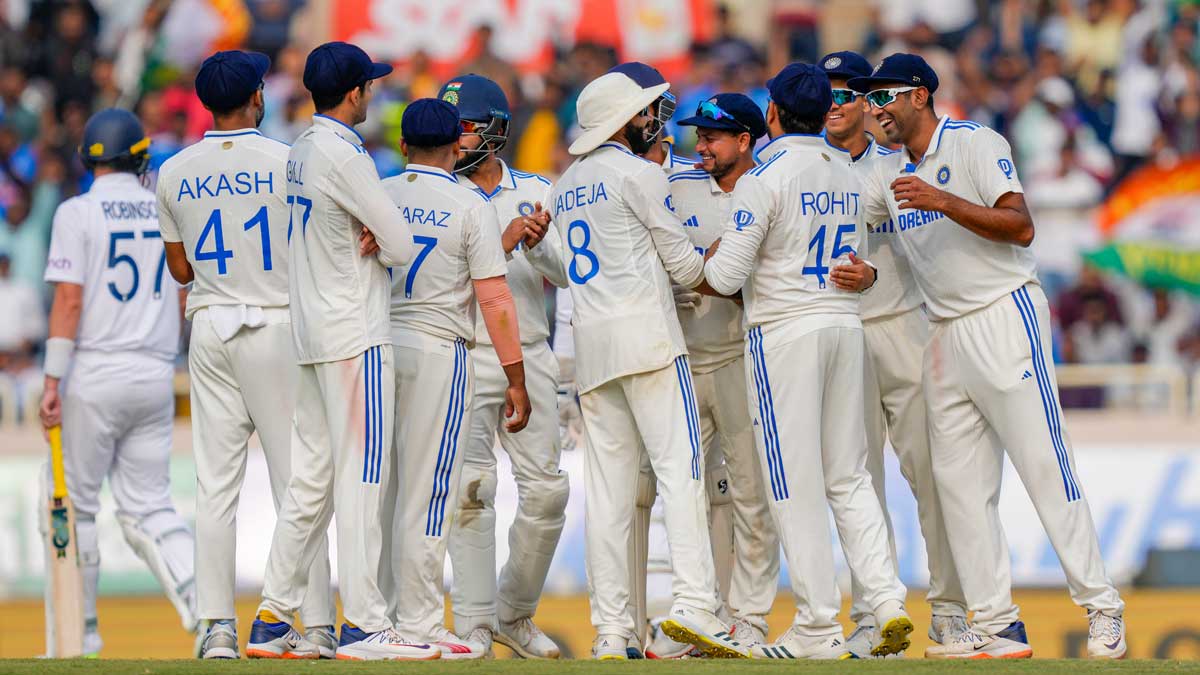 టీమిండియా బ్యాటర్లలో యశస్వీ జైస్వాల్ (73), రోహిత్ శర్మ (2), శుభ్మన్ గిల్ (38), రజత్ పటిదార్ (17), రవీంద్ర జడేజా (12), సర్ఫరాజ్ ఖాన్ (14), అశ్విన్ (1) పరుగులు చేశారు. ఇంగ్లండ్ బౌలర్లలో షోయబ్ బషీర్ అయిదు వికెట్లు, టామ్ హర్ట్లీ మూడు, అండర్సన్ రెండు వికెట్లు తీశారు.
