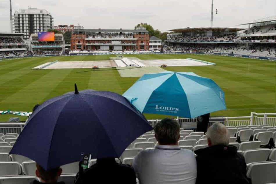 విశాఖ: విశాఖ వేదికగా భారత్-దక్షిణాఫ్రికా జట్ల మధ్య జరుగుతున్న తొలి టెస్టుకు వరణుడు అడ్డుపడ్డాడు. టీ విరామం అనంతరం వర్షం పడడంతో మ్యాచ్కు అంతరాయం కలిగింది. స్టేడియం పరిసరాల్లో ఆకాశం ఒక్కసారిగా మబ్బులు పట్టి.. వర్షం కురిసింది. ఒకవైపు మైదానం చిత్తడిగా మారడం, వెలుతురులేమి కారణంగా మ్యాచ్ సాగేందుకు వీలుకాలేదు. దీంతో మ్యాచ్ను అంపర్లు తాత్కాలికంగా నిలిపివేశారు. అనంతరం కూడా పరిస్థితి అలాగే ఉండడంతో అంపర్లు తొలి రోజు ఆట ముగిసినట్టు ప్రకటించారు.