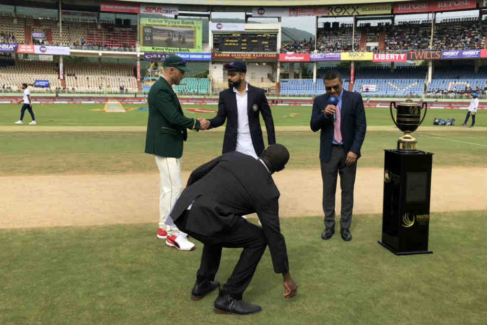విశాఖపట్నం: మూడు టెస్టుల సిరీస్లో భాగంగా విశాఖ సాగర తీరంలో దక్షిణాఫ్రికా, భారత్ జట్ల మధ్య మరికొద్ది సేపట్లో తొలి మ్యాచ్ ప్రారంభం కానుంది. ఈ మ్యాచ్లో టాస్ నెగ్గిన టీమిండియా కెప్టెన్ విరాట్ కోహ్లీ బ్యాటింగ్ ఎంచుకున్నాడు. ఈ టెస్ట్ మ్యాచ్కు టీమిండియా రెండు మార్పులతో బరిలోకి దిగింది. సీనియర్ వికెట్ కీపర్ వృద్ధిమాన్ సాహా, స్టార్ స్పిన్నర్ రవిచంద్రన్ అశ్విన్ తుది జట్టులో చోటు దక్కించుకున్నారు.