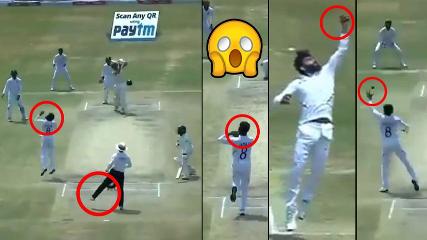 విశాఖ టెస్టులో భారత్ నిర్దేశించిన 395 పరుగుల లక్ష్య ఛేదనలో బరిలోకి దిగిన దక్షిణాఫ్రికా ఆది నుంచి తడబడుతూనే ఉంది. ఈక్రమంలో జడేజా వేసిన 26.1వ బంతిని అయిడెన్ మార్కరమ్ స్ట్రైట్ డ్రైవ్ను కొట్టే యత్నం చేశాడు. తనపైకి దూసుకొస్తున్న బంతిని చూసి వెంటనే స్పందించిన జడేజా.. ఒక్కసారిగా గాల్లోకి ఎగిరి ఒంటిచేత్తో బంతిని అందుకున్నాడు. రెప్పపాటులో జడేజా క్యాచ్ అందుకోవడంతో మార్కరమ్ నోరెళ్లబెట్టి నిరాశగా పెవిలియన్ చేరాడు. అదే ఓవర్లో ఫిలిండర్, మహరాజ్లను కూడా జడేజా ఔట్ చేసాడు. భారత్ మ్యాచ్ గెలవడంలో ఈ క్యాచ్ టర్నింగ్ పాయింట్.