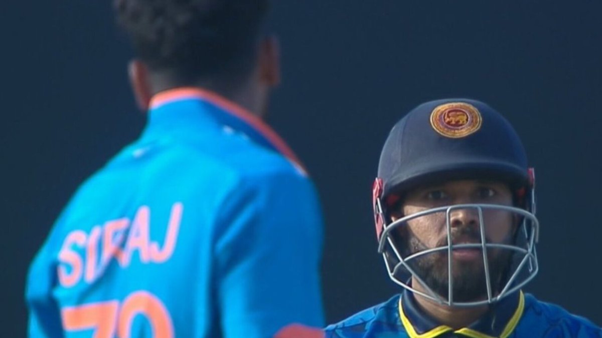 శ్రీలంక ఇన్నింగ్స్ 37వ ఓవర్లో ఈ ఘటన చోటు చేసుకుంది. ఈ ఓవర్ మూడో బంతిని సిరాజ్.. ఆఫ్ సైడ్ కాస్త లోగా వేయగా.. కుశాల్ మెండీస్ డిఫెన్స్ చేశాడు. బంతి కీపర్ చేతుల్లోకి వెళ్లగా.. కాస్త ముందుకు వెళ్లిన సిరాజ్.. బ్యాటర్ను ఏమో అన్నాడు. సిరాజ్ మాటలతో ఆగ్రహానికి గురైన కుశాల్ మెండీస్ ధీటుగా బదులిచ్చాడు. ఇద్దరు ఒకరికొకరు సవాళ్లు విసిరుకున్నట్లు అనిపించింది.