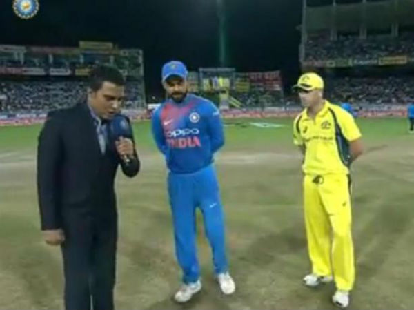 రాంచీ వేదికగా ఆస్ట్రేలియాతో జరుగుతున్న తొలి టీ20లో టాస్ గెలిచిన టీమిండియా కెప్టెన్ విరాట్ కోహ్లీ ఫీల్డింగ్ ఎంచుకున్నాడు. ఇక భారత జట్టులో అక్షర్ పటేల్ స్థానంలో కుల్దీప్ను తీసుకున్నారు. రహానే స్థానంలో ధావన్ వచ్చి చేరాడు. చాలా కాలం తర్వాత జట్టులోకి వచ్చిన సీనియర్ బౌలర్ ఆశిష్ నెహ్రాకు తుది జట్టులో స్థానం దక్కలేదు.