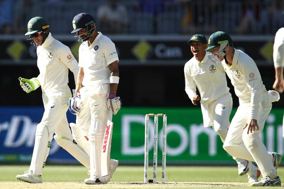 నాథన్ లియాన్ బౌలింగ్ స్లిప్లో క్యాచ్ ఇచ్చి కెప్టెన్ కోహ్లీ పెవిలియన్ చేరాడు. ఆ తర్వాత కొద్ది సేపటికే నిలకడగా ఆడుతోన్న మురళీ విజయ్ని బౌల్డ్ చేసి భారత్ను మరింత కష్టాల్లోకి నెట్టాడు. అంతకుముందు ఆస్ట్రేలియా తన రెండో ఇన్నింగ్స్లో 243 పరుగులకు ఆలౌటైన సంగతి తెలిసిందే.