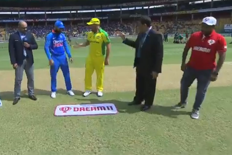 ముంబై: మూడు వన్డేల సిరీస్లో భాగంగా భారత్-ఆస్ట్రేలియా జట్ల మధ్య బెంగళూరులోని చిన్నస్వామి స్టేడియంలో మరోకొద్ది సేపట్లో చివరిదైన మూడో మ్యాచ్ ప్రారంభం కానుంది. టాస్ గెలిచిన ఆస్ట్రేలియా కెప్టెన్ ఆరోన్ ఫించ్ బ్యాటింగ్ ఎంచుకున్నాడు. ఈ మ్యాచ్ కోసం భారత్ ఎలాంటి మార్పులు చేయలేదు. గత మ్యాచ్ విన్నింగ్స్ జట్టునే కొనసాగిస్తోంది. మరోవైపు ఆసీస్ మాత్రం ఒక మార్పు చేసింది. పేసర్ రిచర్డ్సన్ స్థానంలో హజిల్వుడ్ జట్టులోకి వచ్చాడు.