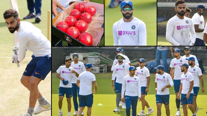 తొలి టెస్టు కోసం ఇండోర్లో మంగళవారం చేసిన సన్నాహకాల్లో గులాబీ బంతులతోనే టీమిండియా ఆటగాళ్లు ఎక్కువసేపు ప్రాక్టీస్ చేశారు. రాత్రి సమయంలో పింక్ బాల్ ఎలా కనిపిస్తుందో ప్రయత్నించేందుకు మైదానంలో వెలుతురు తక్కువగా ఉన్న ప్రదేశంలో ప్రత్యేకంగా ఏర్పాటు చేసిన ప్రాక్టీస్ నెట్లలో చెమటోడ్చారు. డేనైట్ టెస్టు కోసం అలవాటు పడేందుకే ఆటగాళ్లు సంప్రదాయ ఎర్ర బంతితో కాకుండా ఈసారి పింక్ బాల్తో ప్రాక్టీస్ చేశారు.