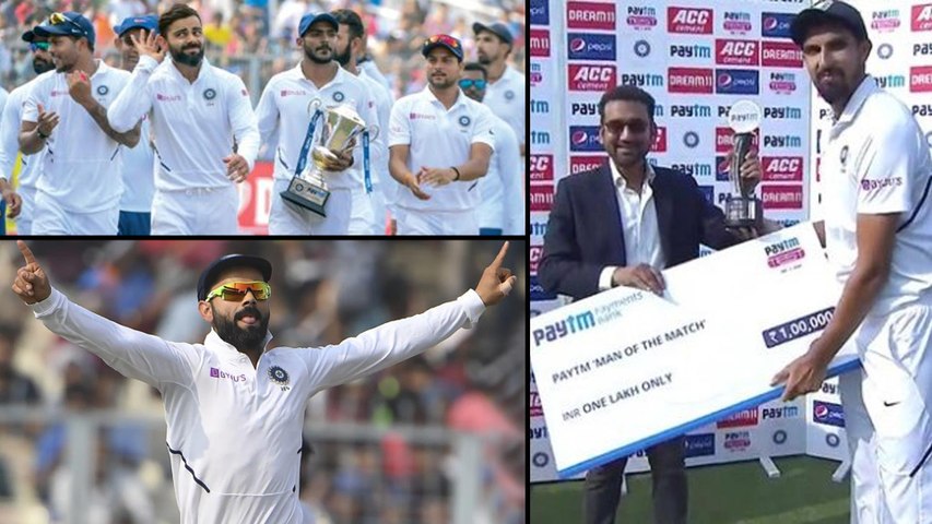 మొదటి ఇన్నింగ్స్లో ఐదు వికెట్లు సాధించిన ఇషాంత్ రెండో ఇన్నింగ్స్లో కూడా నాలుగు వికెట్లతో చెలరేగాడు. దీంతో భారత్లో జరిగిన డే నైట్ టెస్టులో ఇషాంత్ శర్మ అత్యధికంగా మొత్తం 9 వికెట్లు సాధించాడు. ఇక, ఉమేశ్ యాదవ్ ఎనిమిది వికెట్లతో రెండో స్థానంలో నిలిచాడు. తొలి ఇన్నింగ్స్లో భారత్ 347/9 వద్ద డిక్లేర్డ్ చేయగా, బంగ్లా 106 పరుగులకే ఆలౌటైంది.