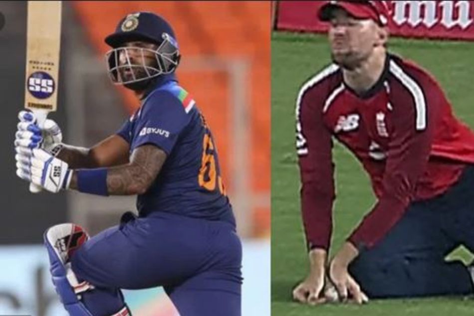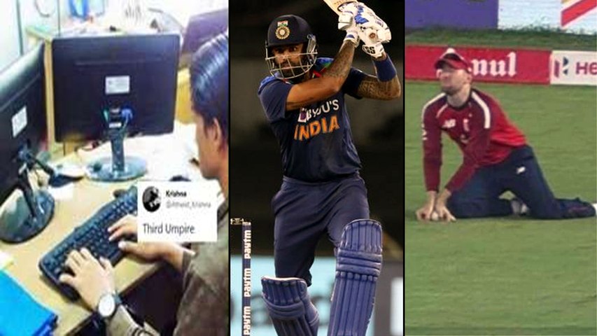 ఇక సామ్ కరన్ వేసిన 14 ఓవర్ తొలి బంతిని తనదైన రివర్స్ స్వీప్ షాట్తో భారీ సిక్సర్ కొట్టిన సూర్య.. ఆ మరుసటి బంతిని కూడా అదే రీతిలో నటరాజ్ షాట్ ఆడాడు. అయితే బంతి ఫైన్ లెగ్లో ఉన్న డేవిడ్ మలన్ చేతిలో పడింది. కానీ అతను క్యాచ్ పట్టే క్రమంలో బంతి నేలకు తాకినట్లు అనిపించడంతో ఫీల్డ్ అంపైర్ థర్డ్ అంపైర్ సమీక్ష కోరాడు. పలు కోణాల్లో పరిశీలించిన థర్డ్ అంపైర్.. బంతి నేలకు తాకినట్లు స్పష్టమైన ఆధారం లేదని, నిబంధనల మేరకు తాను ఫీల్డ్ అంపైర్ ఇచ్చిన సాప్ట్ సిగ్నల్కు కట్టుబడి ఔటిస్తున్నానని తెలిపాడు. అయితే బంతి నేలకు తాకినట్లు స్పష్టంగా కనబడుతున్నా అంపైర్ ఆధారం లేదనడం వివాదాస్పదమైంది.
