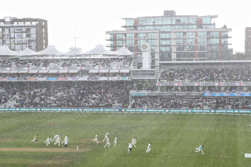 ఈ క్రమంలో మరోమారు వర్షం పడడంతో మ్యాచ్ నిలిచిపోయింది. ఈ సమయంలో అంఫైర్లు లంచ్ విరామాన్ని ప్రకటించారు. లంచ్ విరామం అనంతరం తిరిగి మ్యాచ్ ప్రారంభం కాగా 15 పరుగుల వద్ద పుజారా (1) రనౌట్గా పెవిలియన్కు చేరాడు. దీంతో కోహ్లీసేన 15 పరుగులకే మూడు వికెట్లు కోల్పోయింది.