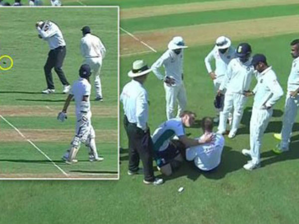 అశ్విన్ ఓవర్లో బంతిని ఇంగ్లాండ్ ఆటగాడు జెన్నింగ్స్ లెగ్స్టంప్ వైపు పంపంచి సింగిల్ తీశాడు. ఈ క్రమంలో ఫీల్డర్ భువనేశ్వర్ కుమార్ బంతిని అందుకుని నేరుగా త్రో విసిరాడు. ఆ బంతి అంఫైర్ పాల్ రైఫిల్ తలకు వెనుక బాగాన తగిలింది. దీంతో ఆయన అక్కడికక్కడే కుప్పకూలిపోయాడు.