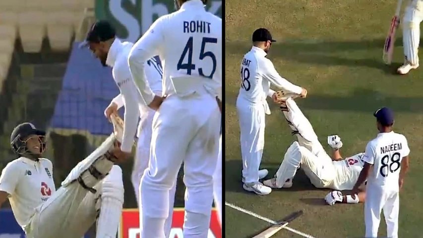 87వ ఓవర్లో అశ్విన్ వేసిన బంతిని సిక్స్ బాదిన ఇంగ్లాండ్ సారథి రూట్.. అదే సమయంలో తన పాదం తిమ్మిరి ఎక్కడం వల్ల మైదనంలో కింద పడిపోయాడు. ఆ బాధ తట్టుకోలేక కాసేపు విలవిలలాడాడు. ఇది చూసిన విరాట్.. వెంటనే రూట్ వద్దకు వచ్చి అతడి పాదాన్ని పట్టుకుని నిమురుతూ ముందు వెనక్కి కదిపాడు. దీంతో ఉపశమనం పొందిన రూట్.. మళ్లీ క్రీజులోకి వెళ్లిపోయాడు. ఇక విరాట్ కోహ్లీ చేసిన పనిని జోరూట్ మెచ్చుకున్నాడు. తొలి రోజు ఆట అనంతరం బ్రాడ్ కాస్టర్ హోస్ట్ మురళీ కార్తీక్తో మాట్లాడుతూ విరాట్ కోహ్లీకి ధన్యవాదాలు తెలిపాడు. ఇక బీసీసీఐ కూడా క్రీడాస్పూర్తి అంటే ఇదే కదా అనే క్యాప్షన్తో వీడియోను పంచుకుంది.