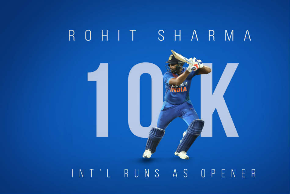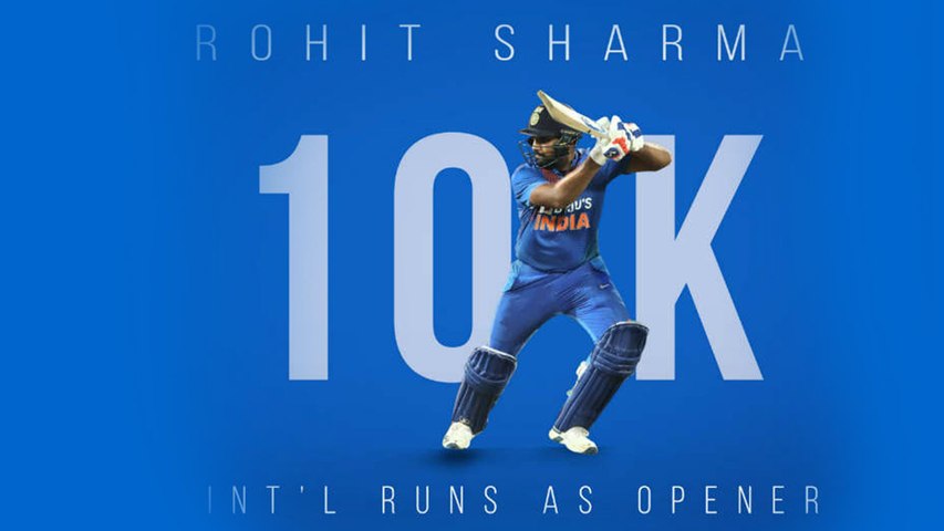 ఫలితంగా మూడు ఫార్మాట్లలో పదివేల పరుగుల మైలురాయిని అందుకున్న క్రికెటర్గా రోహిత్ శర్మ అరుదైన ఘనత సాధించాడు. మొత్తంగా అంతర్జాతీయ క్రికెట్లో అన్ని ఫార్మట్లలో కలిపి పది వేల పరుగులు సాధించిన నాలుగో టీమిండియా ఓపెనర్గా రోహిత్ మరో ఘనత సాధించాడు. సునీల్ గవాస్కర్, సచిన్ టెండూల్కర్, వీరేంద్ర సెహ్వాగ్ల తర్వాత ఈ ఘనత సాధించిన నాలుగో ఓపెనర్ రోహిత్ కావడం విశేషం. అయితే, హాఫ్ సెంచరీ అనంతరం మరింత దూకుడుగా ఆడే క్రమంలో జట్టు స్కోరు 94 పరుగుల వద్ద రోహిత్ శర్మ (40 బంతుల్లో 65, 6 ఫోర్లు, 3 సిక్సులు) ఔటయ్యాడు.