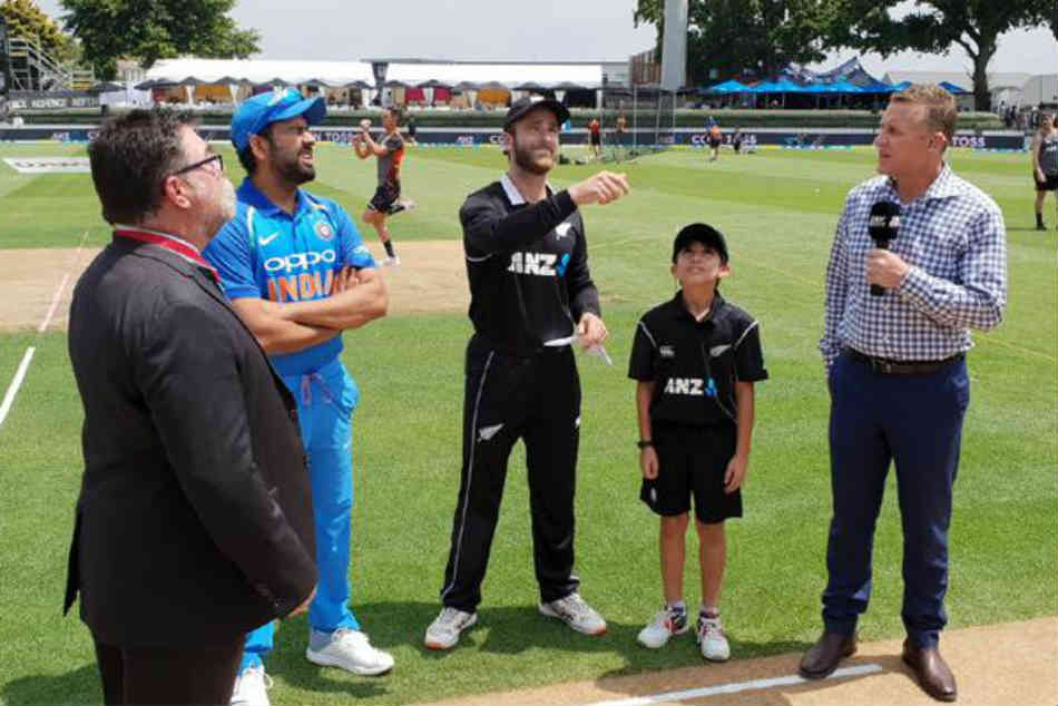 హైదరాబాద్: ఐదు వన్డేల సిరీస్లో భాగంగా భారత్-న్యూజిలాండ్ జట్ల మధ్య ఐదో వన్డే వెల్లింగ్టన్ వేదికగా ప్రారంభమైంది. ఈ మ్యాచ్లో టాస్ గెలిచిన టీమిండియా తాత్కాలిక కెప్టెన్ రోహిత్ శర్మ బ్యాటింగ్ ఎంచుకున్నాడు. భారత్ తుది జట్టులో మూడు మార్పులు చోటు చేసుకున్నాయి. తొడ కండరాల గాయం కారణంగా మూడు, నాలుగు వన్డేలకి దూరమైన ధోని ఫిట్నెస్ సాధించడంతో మళ్లీ తుది జట్టులోకి వచ్చాడు.