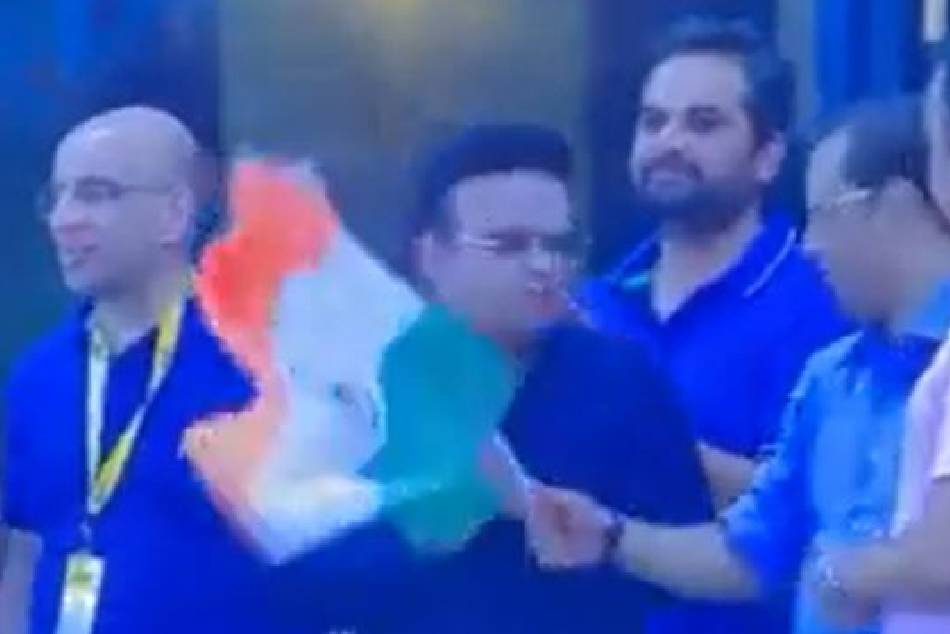 వీఐపీ బాక్స్లో ఉంటూ మ్యాచ్ చూస్తోన్న జై షా, ఇతర ప్రముఖులు కూడా లేచి నిల్చుని గట్టిగా చప్పట్లు కొట్టారు. తిరంగా రెపరెపలాడించారు. ఆ సమయంలో జై షా పక్కనే నిల్చున్న ఓ వ్యక్తి తన చేతిలో ఉన్న జాతీయ జెండాను ఆయనకు అందించడానికి ప్రయత్నించాడు. జెండాను జై షా చేతికి ఇవ్వబోగా.. చప్పట్లు కొడుతూ కనిపించిన ఆయన దీన్ని అందుకోవడానికి నిరాకరించారు. తలను అడ్డంగా ఊపారు.