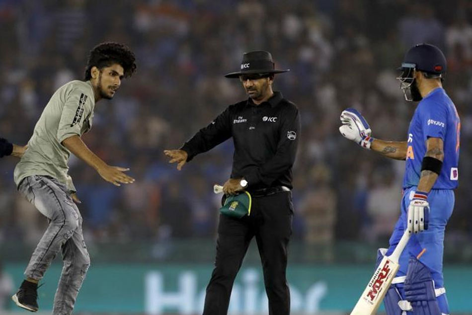 విరాట్ కోహ్లీపై ఉన్న అభిమానంతో కొందరు అభిమానులు అయితే ఓ అడుగు ముందుకేసి సెక్యూరిటీని తప్పించుకుని అతన్ని కలవాలని చూస్తుంటారు. తాజాగా ఇలాంటి ఘటనే మొహాలీలో జరిగింది. దక్షిణాఫ్రికాతో బుధవారం జరిగిన రెండో టి20 మ్యాచ్లో కోహ్లీ బ్యాటింగ్ చేస్తుండగా.. ఓ అభిమాని స్టేడియంలోకి దూసుకొచ్చాడు. కరచాలనం చేయాలని ప్రయత్నించగా.. కోహ్లీ ఆందోళనకు గురై వెనక్కు తగ్గాడు. ఇంతలో సెక్యూరిటీ గార్డులు వచ్చి అభిమానిని బయటికి తీసుకెళ్లిపోయారు.
