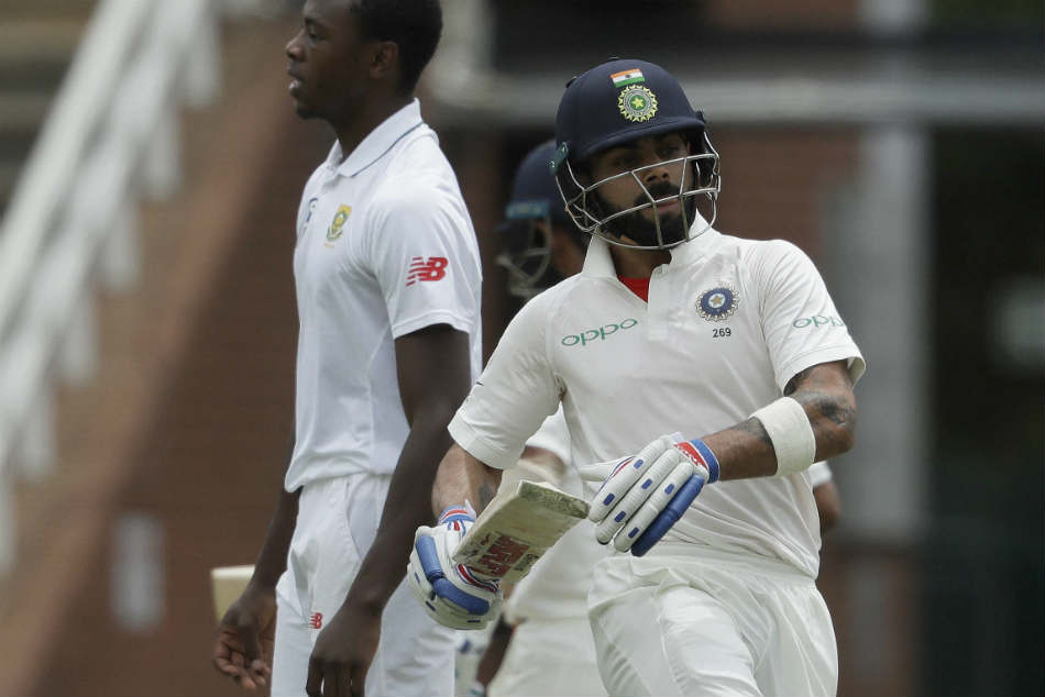 దక్షిణాఫ్రికా దుర్బేద్యమైన బౌలింగ్ను ఎదుర్కొంటున్న కోహ్లీ, పూజారాల జోడికి పెద్ద కష్టం వచ్చి పడింది. ఎంగిడి 42.4 ఓవర్లకు వేసిన బంతిని షాట్ కొట్టిన కోహ్లీ క్యాచ్ ఇవ్వడంతో 106బంతులకు గాను 54 స్కోరును నమోదు చేసి అవుటయ్యాడు. పెద్దగా పరుగులేమీ చేయకపోయినా పూజారా మాత్రం క్రీజులో స్థిరబడిపోయాడు.