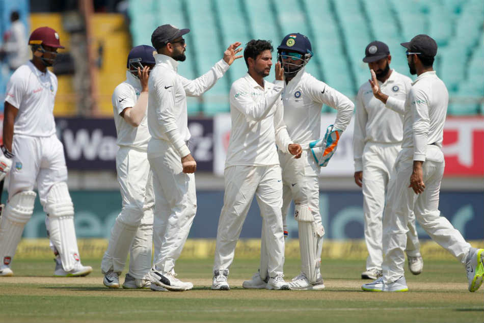 విండీస్ తొలి వికెట్ను అశ్విన్ తీయగా, ఆపై ఐదు వికెట్లను కుల్దీప్ యాదవ్ సాధించాడు. విండీస్ చివరి నాలుగు వికెట్లలో రవీంద్ర జడేజా మూడు వికెట్లు సాధించగా, అశ్విన్ వికెట్ తీశాడు. దీంతో వెస్టిండిస్ జట్టు కనీసం రెండొంద పరుగుల మార్కును చేరుకుండానే ఆలౌటైంది. దీంతో రెండు టెస్టుల ఈ సిరీస్లో టీమిండియా 1-0తో ఆధిక్యంలో నిలిచింది. అంతకముందు భారత్ తన తొలి ఇన్నింగ్స్ను 649/9 వద్ద డిక్లేర్ చేసిన సంగతి తెలిసిందే.